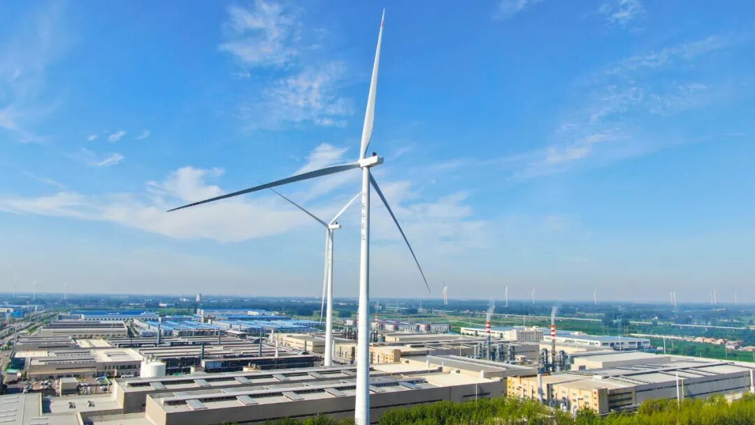 安徽英科醫(yī)療分布式風電項目總裝機容量11.2兆瓦,采用兩臺三一重能SI-20056型號風機,預計年發(fā)電量超2240萬千瓦時,不僅覆蓋所有生產(chǎn)用電需求,每年為園區(qū)節(jié)省電費超千萬元,盈余電量還可接入當?shù)仉娋W(wǎng),再去反哺更多的綠色用能場景。