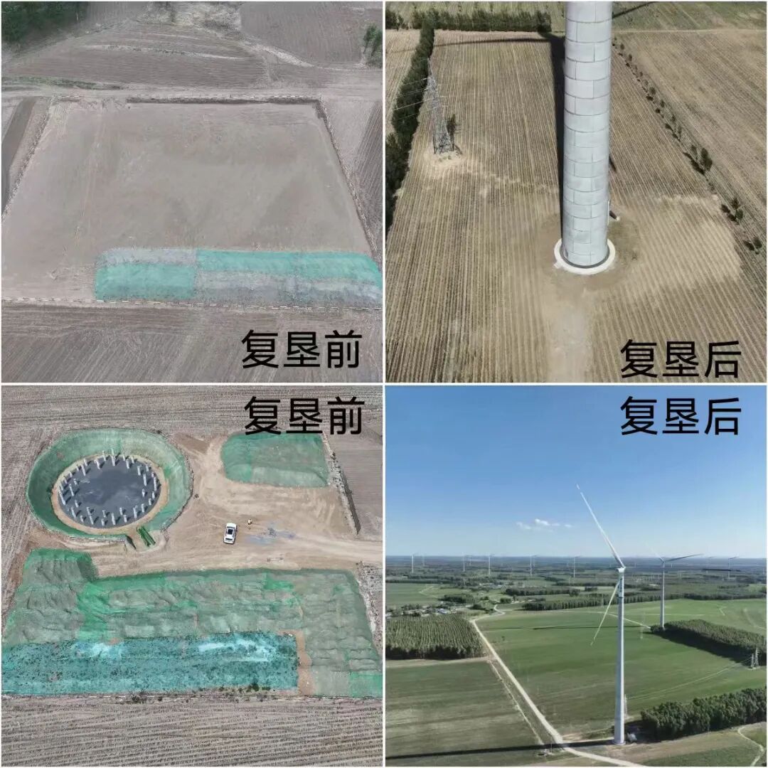 目前項目涉及的64臺風機和1座升壓站共22.8120公頃臨時用地已全部通過驗收,復墾率達到100%。復墾區耕地土壤肥力與林地植被覆蓋率均實現提升。地方政府評價指出,該項目的復墾工作“既守住了生態紅線,又盤活了土地資源”,實現了生態與經濟效益的雙贏,踐行了“綠水青山就是金山銀山”的理念,也為地區施工臨時用地復墾工作提供了可復制、可推廣的綠色范本。